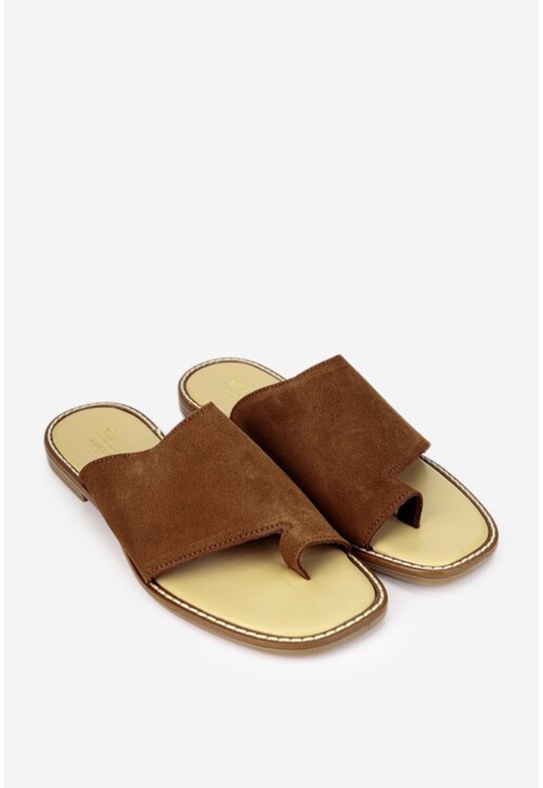 Specification: Sandale stil papuc dama din piele intoarsa maro