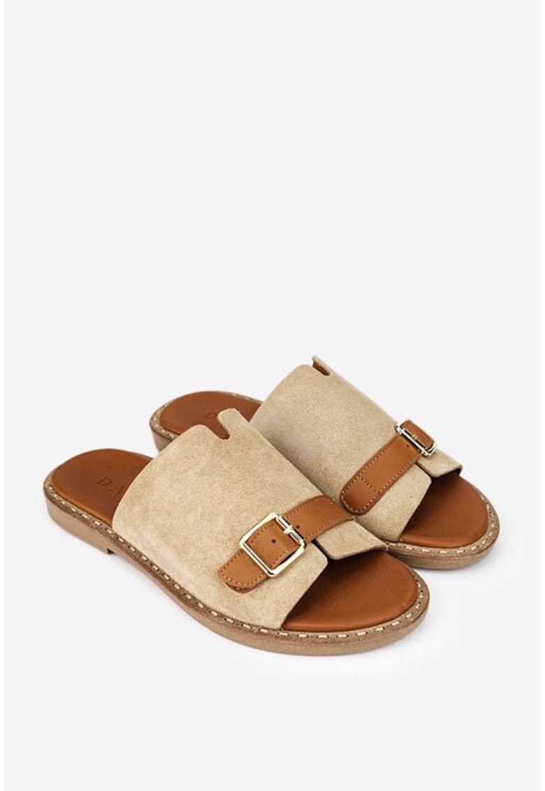 Specification: Sandale stil papuc dama din piele taupe cu maro