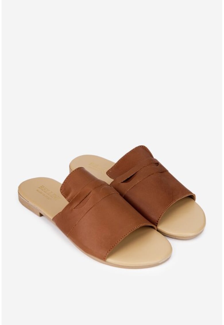 Sandale stil papuc dama maro din piele naturala