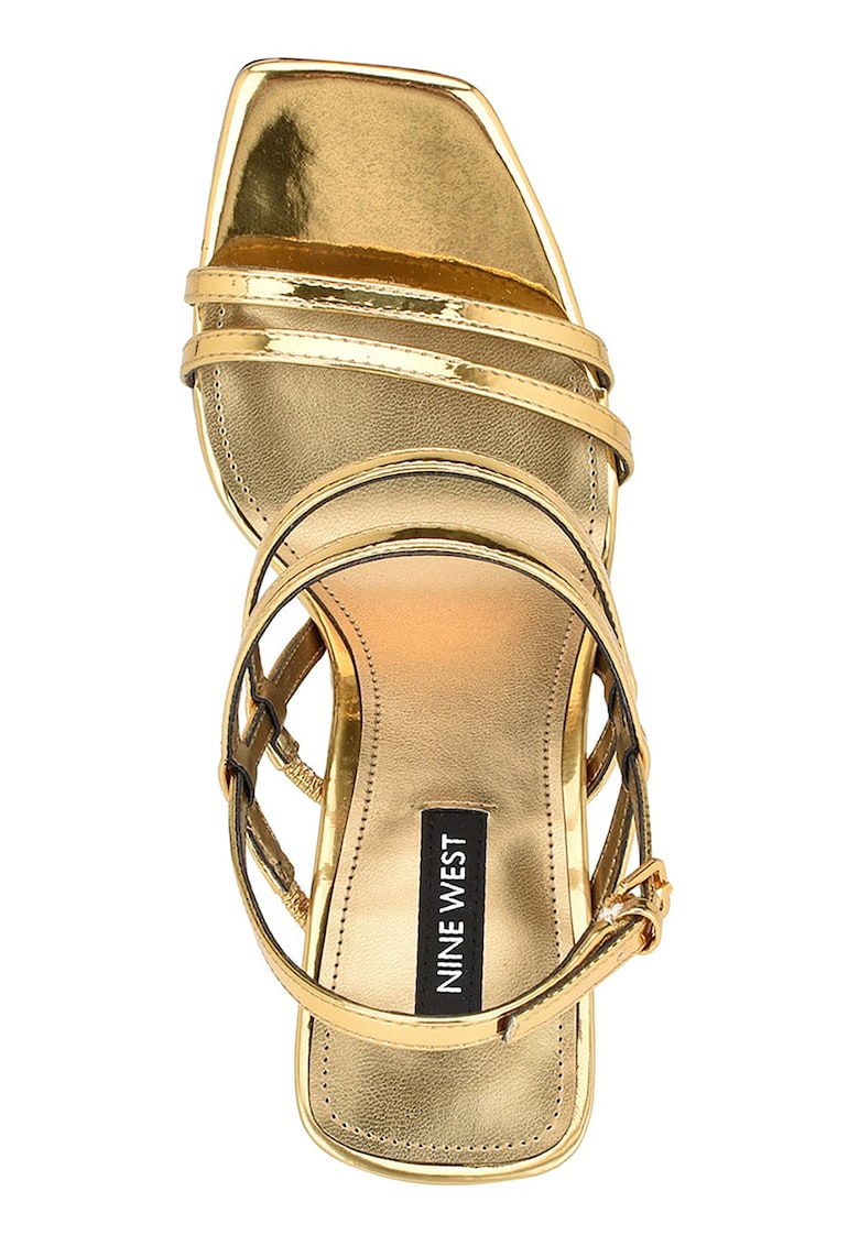 Caracteristici Tip: cu toc Culoare: auriu Material: piele ecologica Stil: casual Tip toc: stiletto Culoare elemente metalice: argintiu Sistem inchidere: catarama Compozitie Partea superioara: alte materiale Material interior: alte materiale Material talpa: alte materiale Dimensiuni Inaltime toc: 9.5 cm