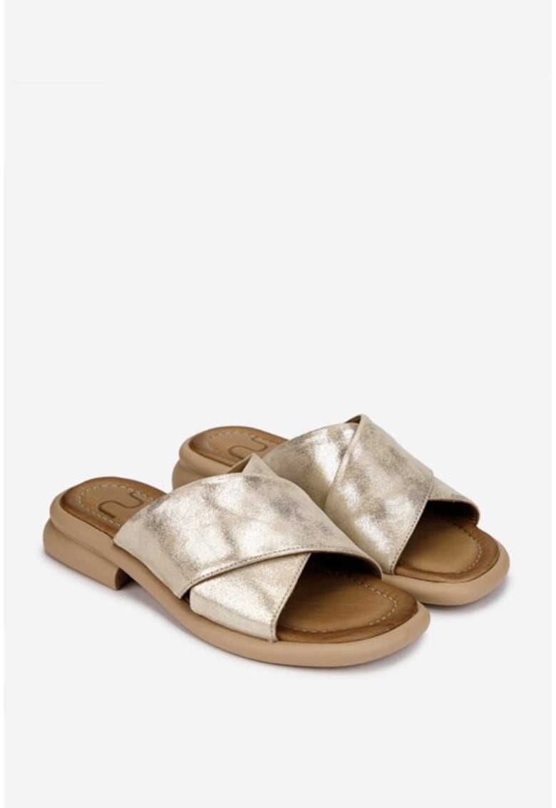 Specification: Sandale tip papuc dama din piele naturala aurie