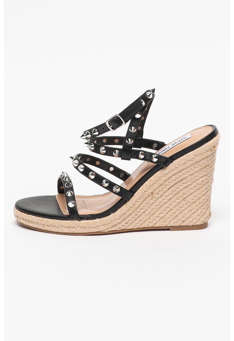 Caracteristici Tip: cu platforma Culoare: negru Material: piele ecologica Stil: casual Tip talpa: wedge Detalii: tinte Sistem inchidere: catarama Compozitie Partea superioara: alte materiale Material interior: alte materiale Material talpa: alte materiale