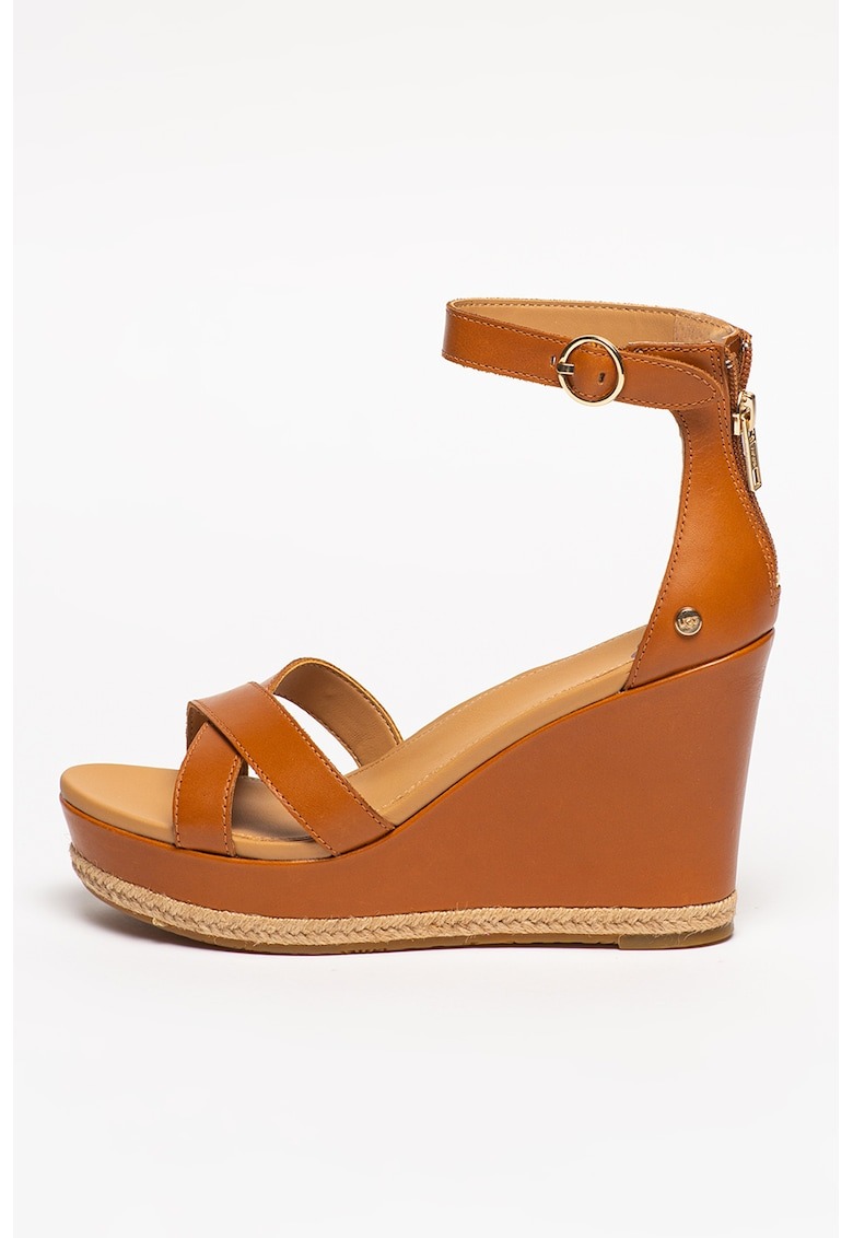 Caracteristici Tip: cu platforma Culoare: maro Material: piele naturala Imprimeu: uni Stil: casual Tip talpa: wedge Sistem inchidere: catarama Compozitie Partea superioara: piele Material interior: alte materiale Material talpa: alte materiale Dimensiuni Platforma spate: 9 cm