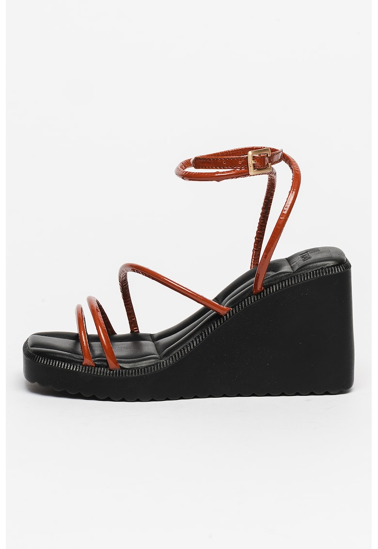 Caracteristici Tip: cu platforma Culoare: rosu Material: sustenabil – piele naturala Stil: casual Tip talpa: wedge Culoare elemente metalice: auriu Sistem inchidere: catarama Compozitie Partea superioara: piele Material interior: piele Material talpa: alte materiale Dimensiuni Platforma spate: 9 cm